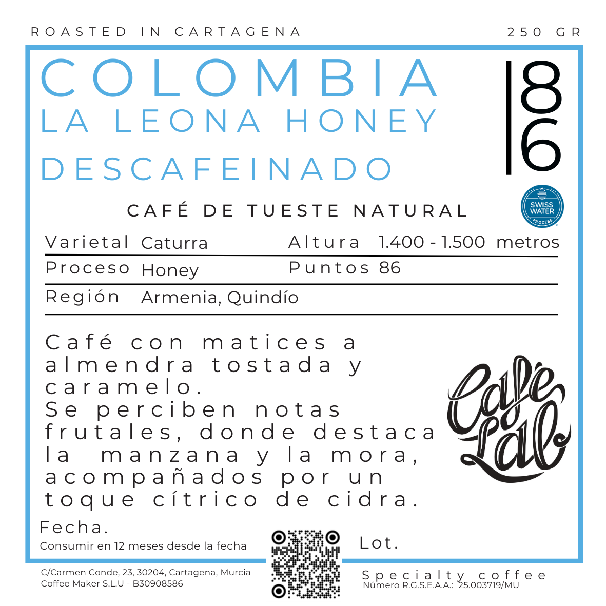 Descubre el café de especialidad Colombia la leona honey descafeinado, un café excepcional originario de Armenia, Quindío.