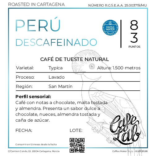 Café de especialidad Perú descafeinado